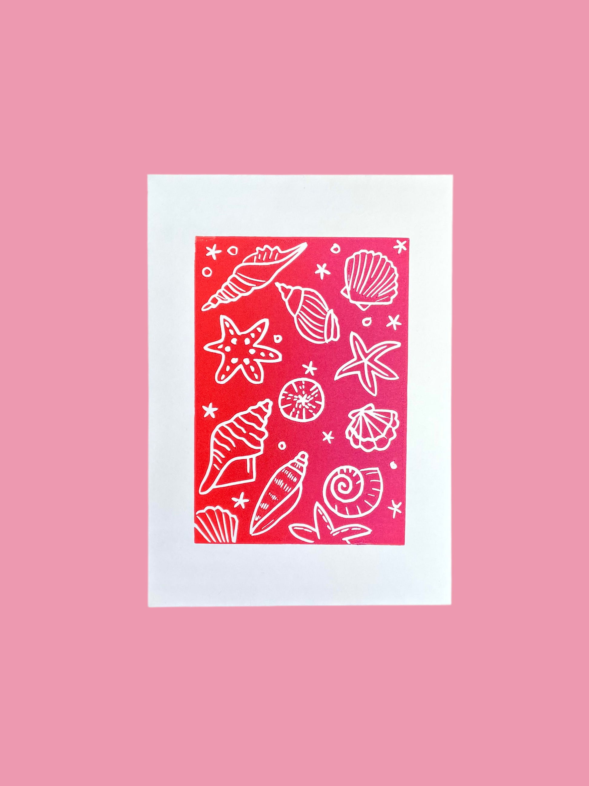 med sig. Hvert tryk er unikt og håndtrykt på 250g A5-papir (14,8 x 21 cm).