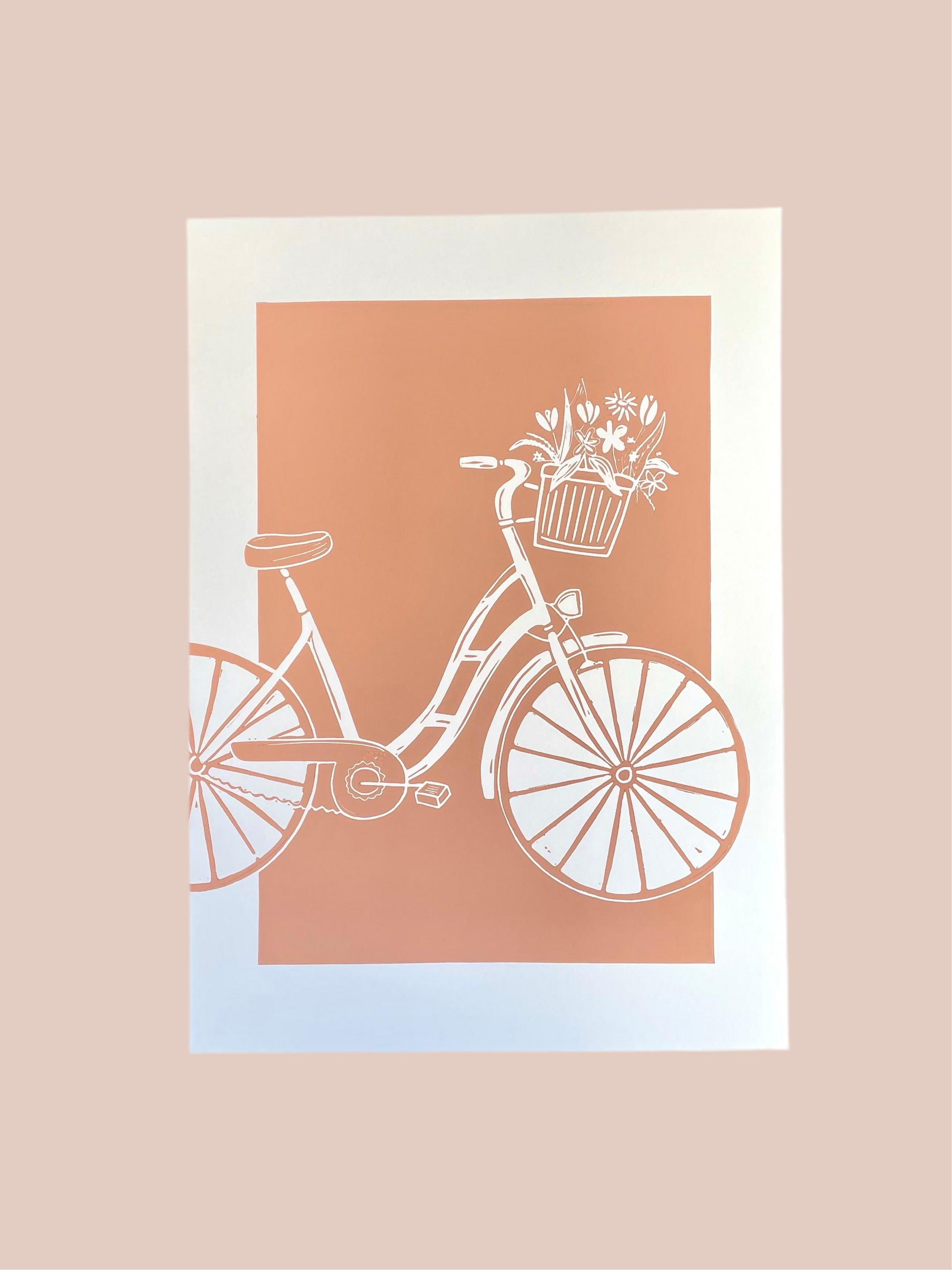 Dette linoleumstryk indfanger essensen af en dansk sommer – lyden af cykeldæk på grusvej, den lune brise mod kinden og en kurv fyldt med markblomsternes farvespil, som vidner om dage med solskin og frihed under åben himmel.