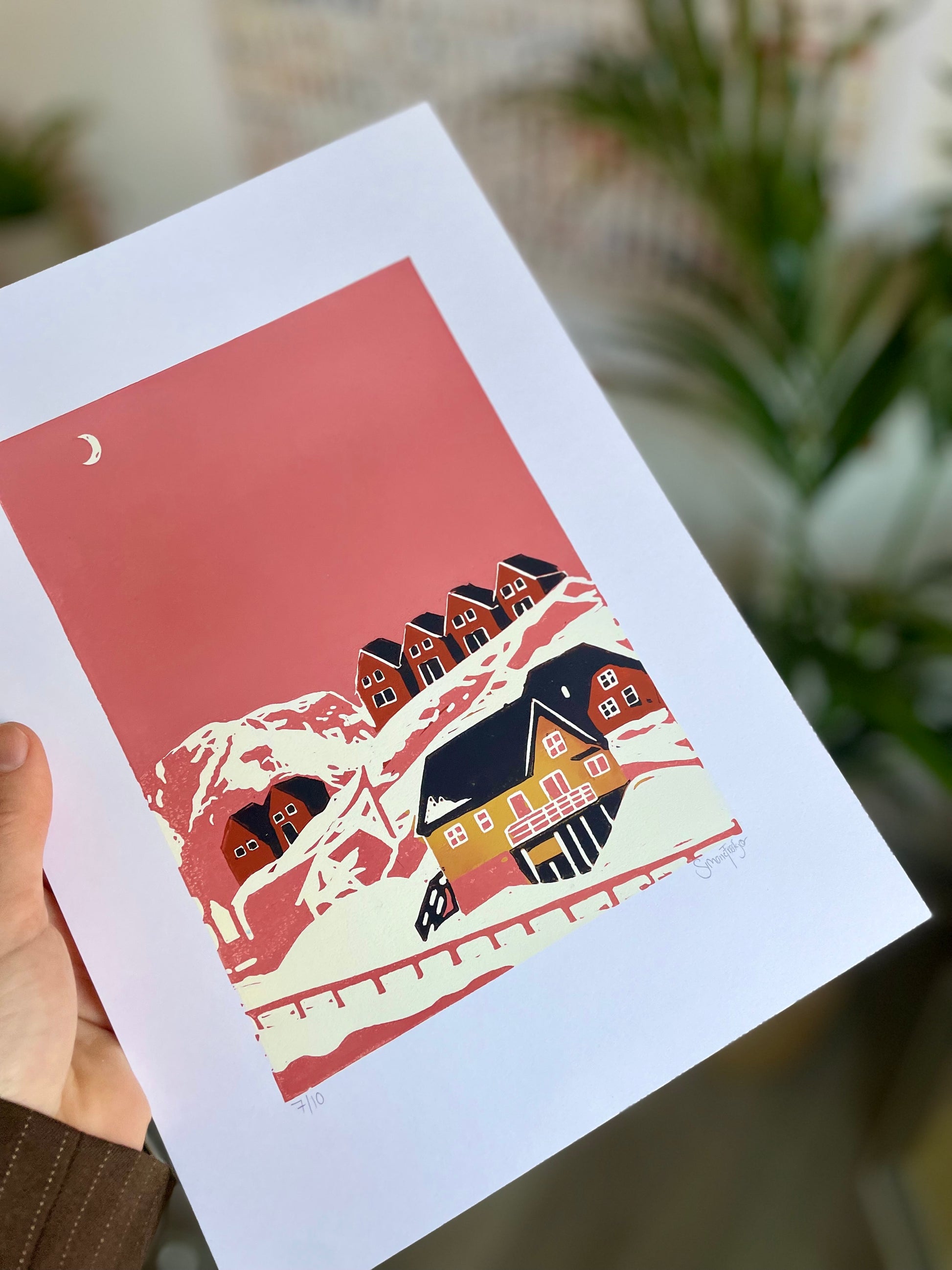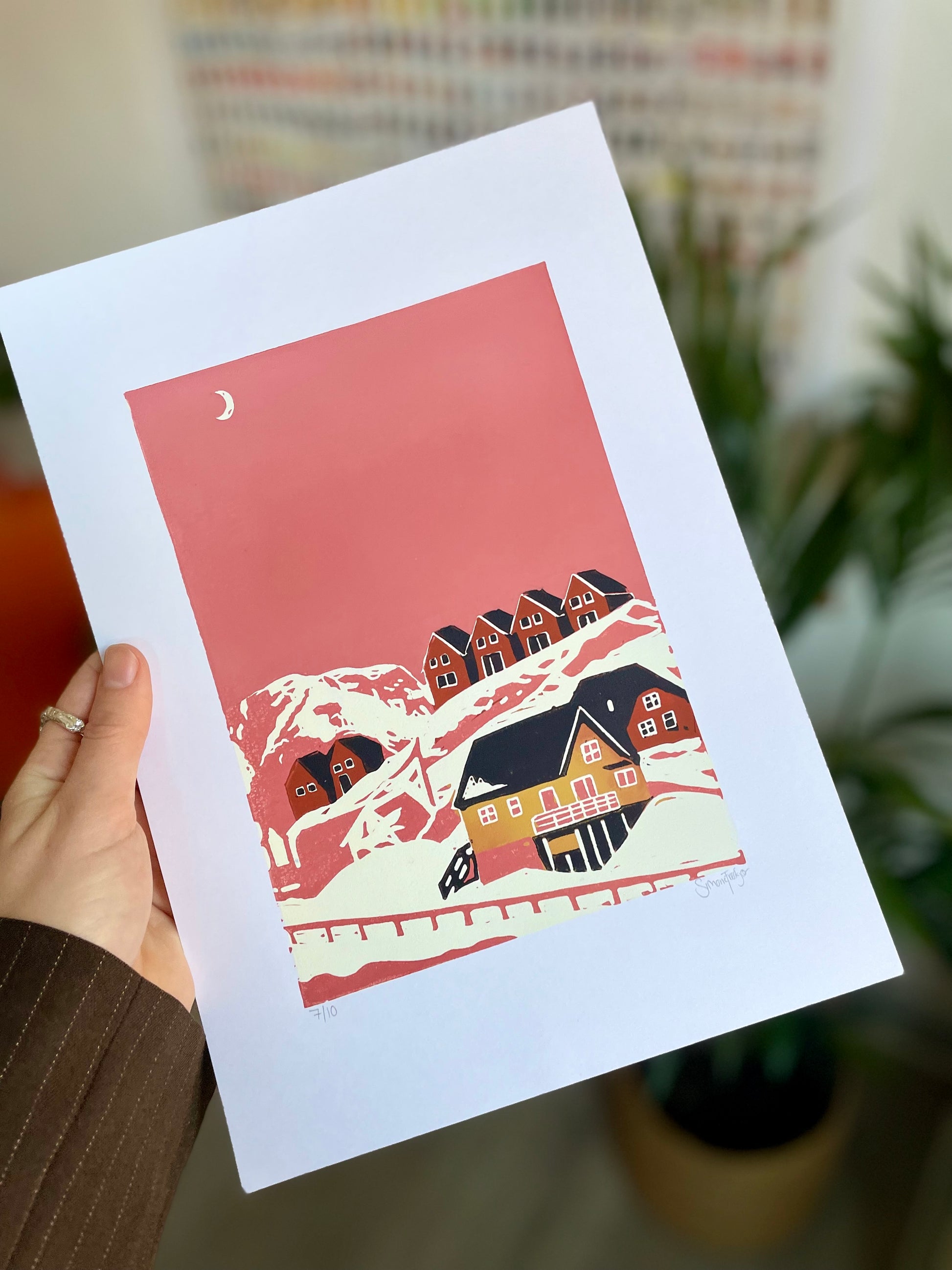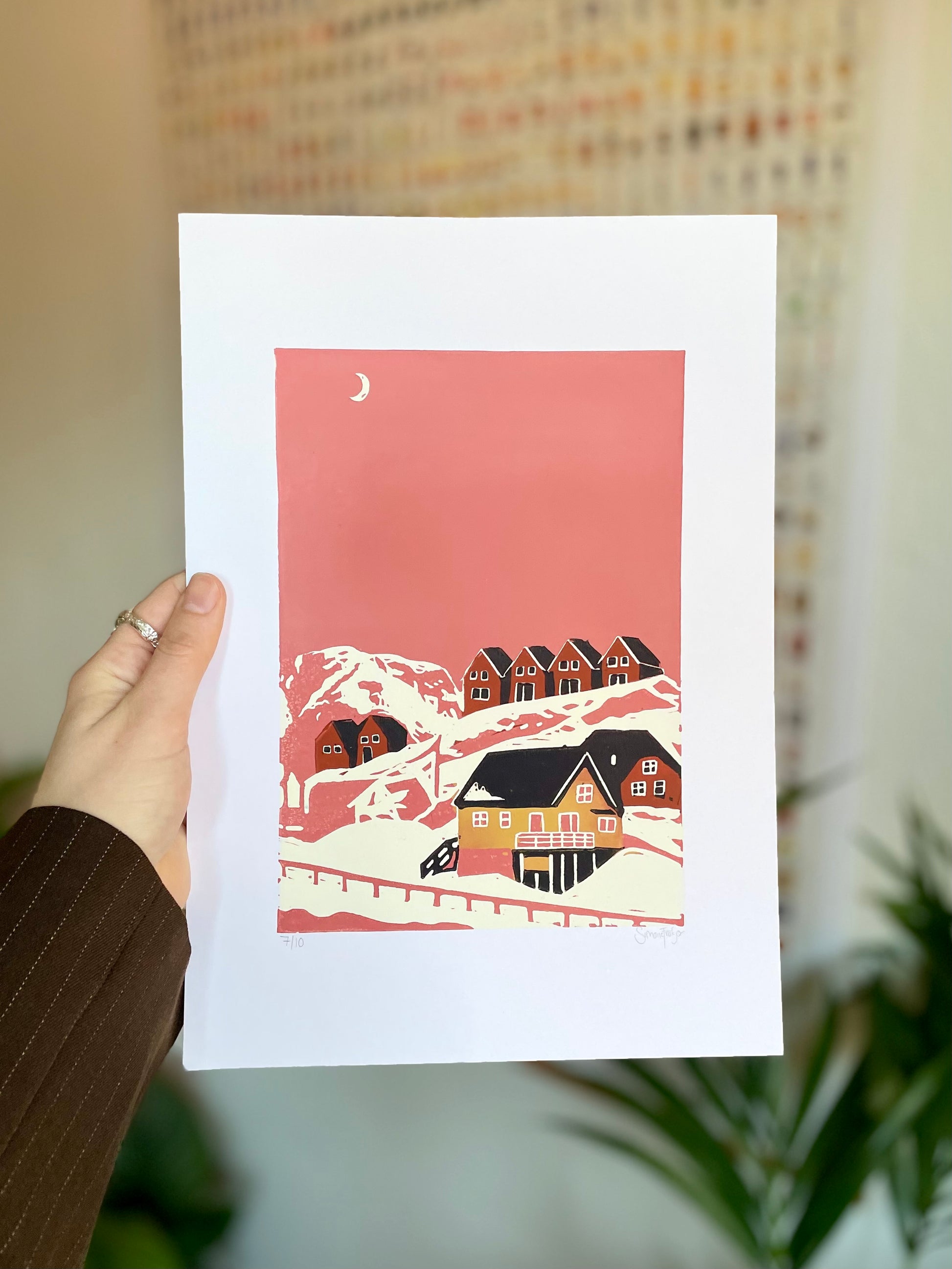 Inspireret af udsigten fra Sømandshjemmet i Sisimiut, hvor jeg boede og arbejdede i et år.