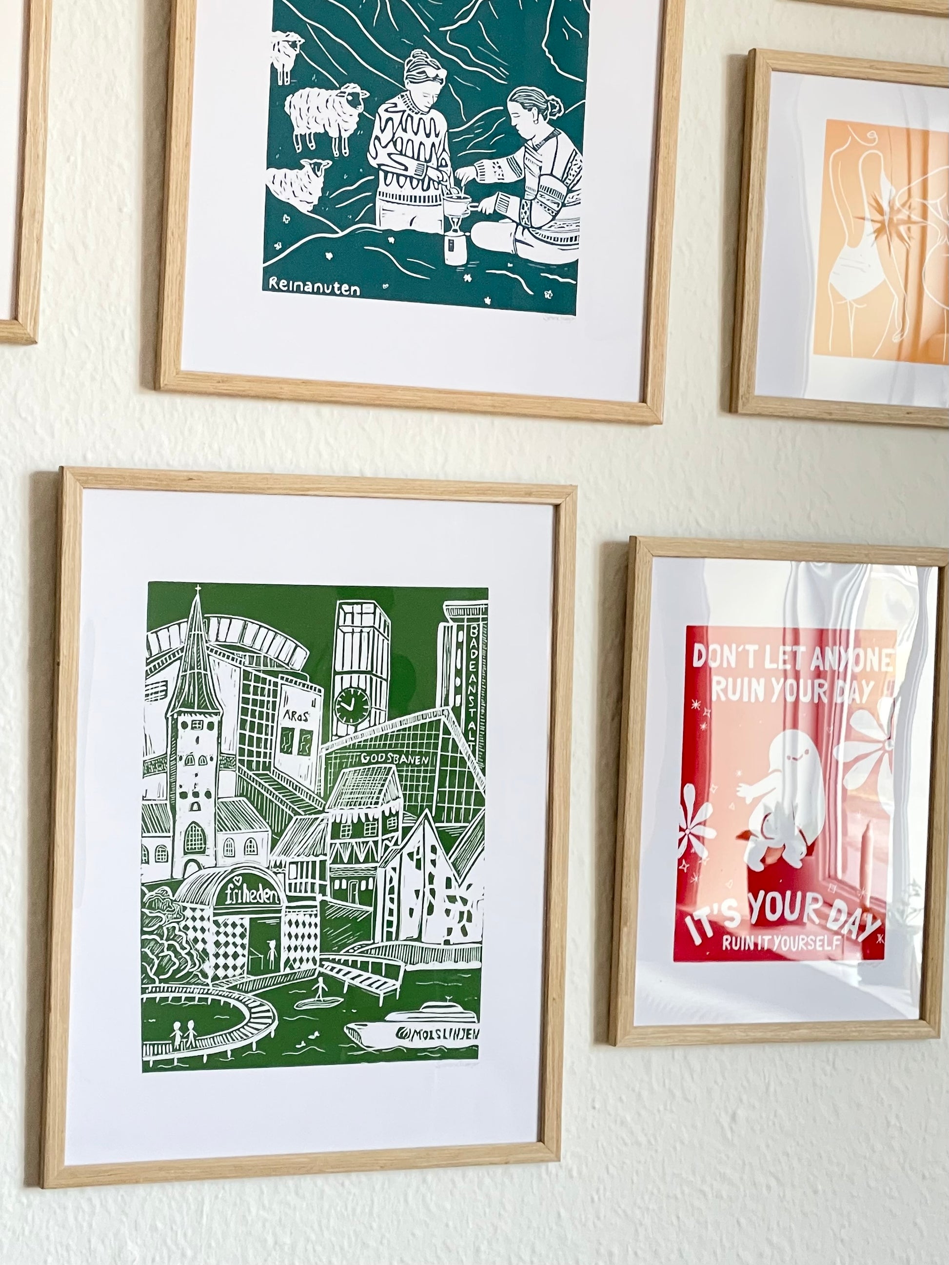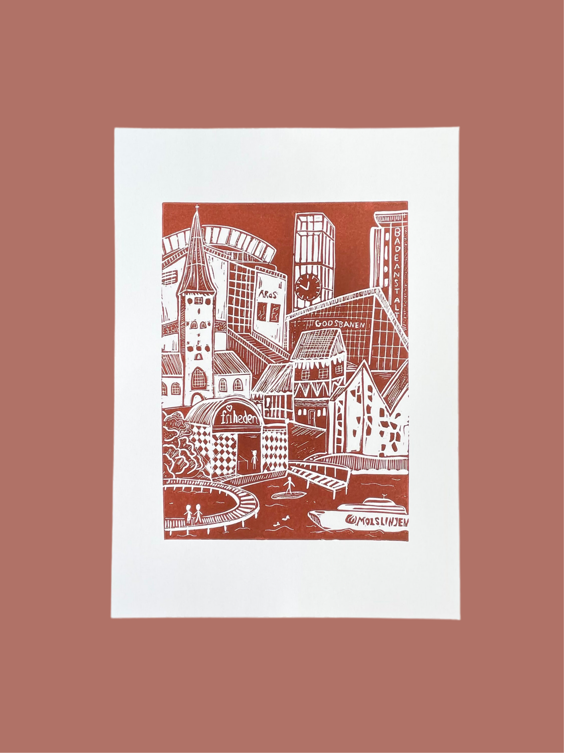A linoleum print of Aarhus with all the little details that make the city so special. Handmade and completely unique – perfect for those who love Aarhus or just want to bring a bit of the city's charm home with you on your wall.